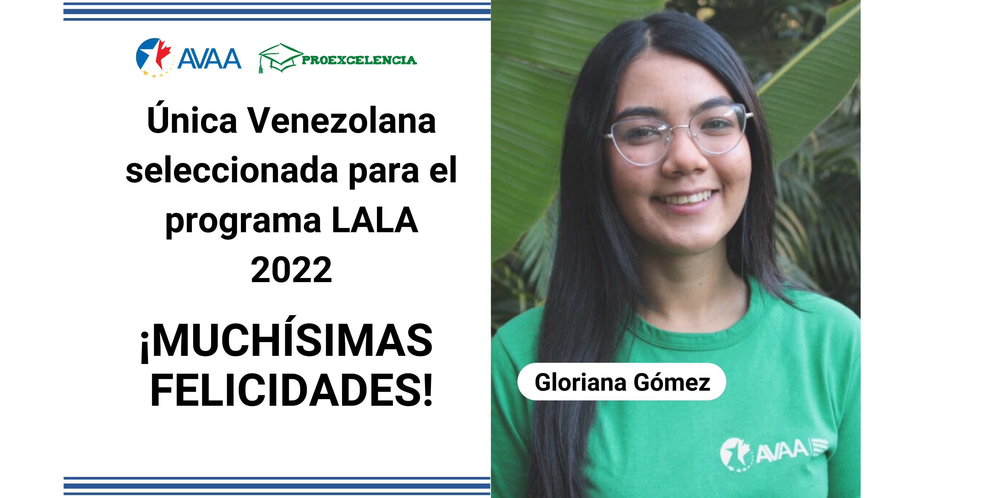 Nuestra becaria Gloriana Gómez, estudiante de Administración de Empresas en la Universidad de Nueva Esparta, fue la única venezolana en recibir una beca de La Academia Latinoamericana de Liderazgo (LALA) 2022. Este es un programa intensivo de liderazgo virtual que brinda las herramientas, el apoyo comunitario y la capacitación para una profunda transformación social y personal a través de una serie de sesiones virtuales interactivas diseñadas por nuestro personal de clase mundial, con el fin de apoyar a los jóvenes líderes de América Latina.